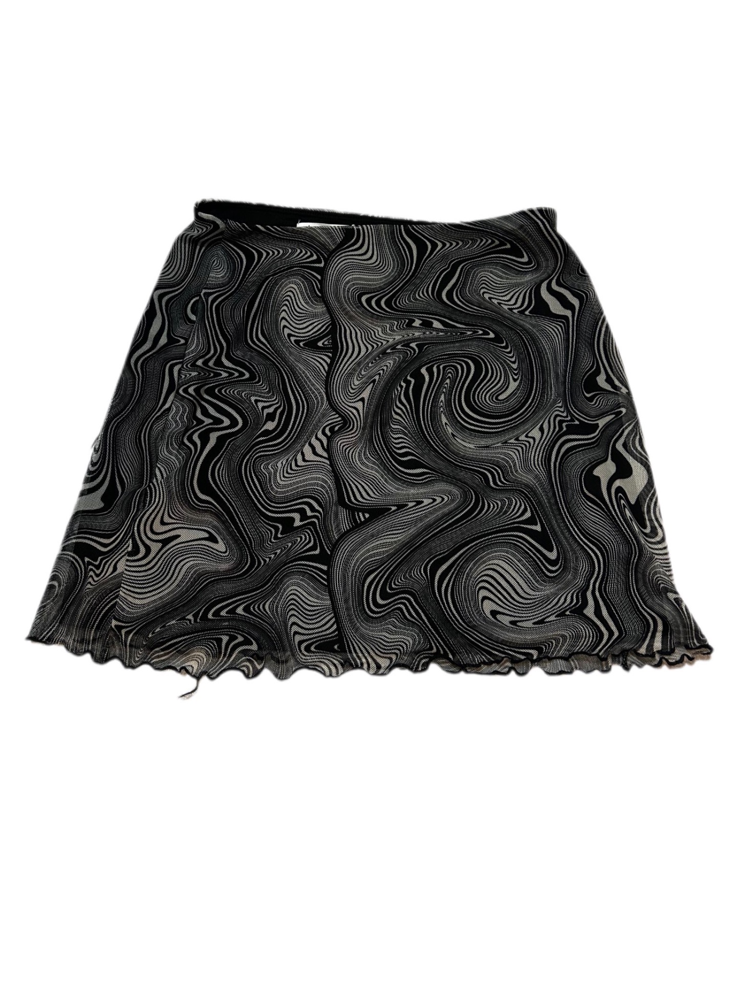 Štýlová mini sukňa s výrazným optickým čiernobielym vzorom a jemným vlnkovaným lemom na spodnom okraji. Materiál je ľahko elastický, vďaka čomu sa pohodlne prispôsobí postave. Ideálna na leto, párty alebo bežné nosenie – výborne ladí s jednoduchým topom alebo čiernou koženkou.