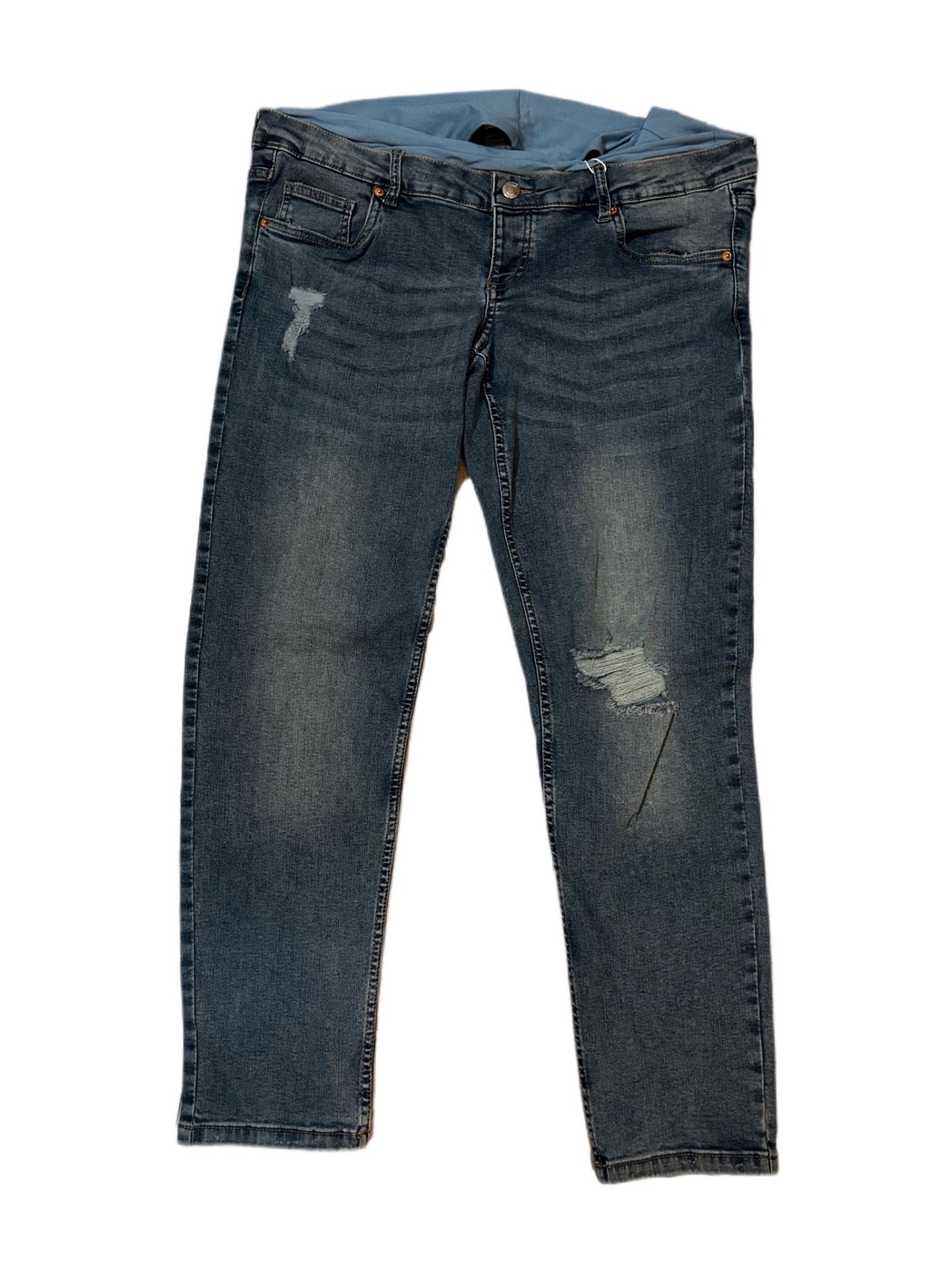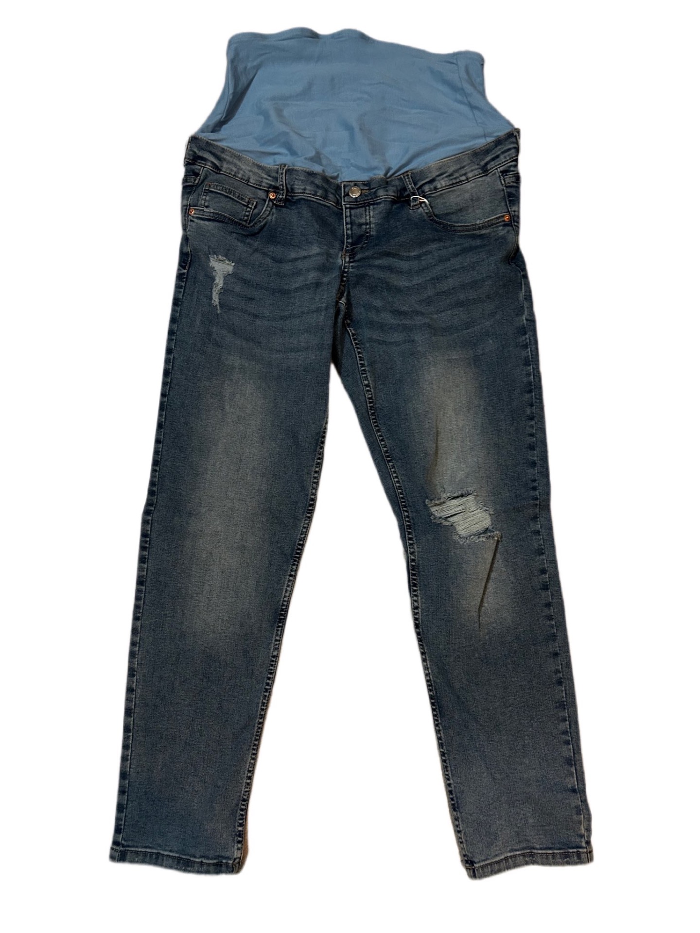 Moderné a pohodlné tehotenské rifle v klasickej modrej džínsovej farbe, ktoré kombinujú štýl a komfort. Majú elastický pás v hornej časti, ktorý sa prispôsobí rastúcemu brušku, a mierne roztrhaný efekt na nohaviciach pre ležérny vzhľad.