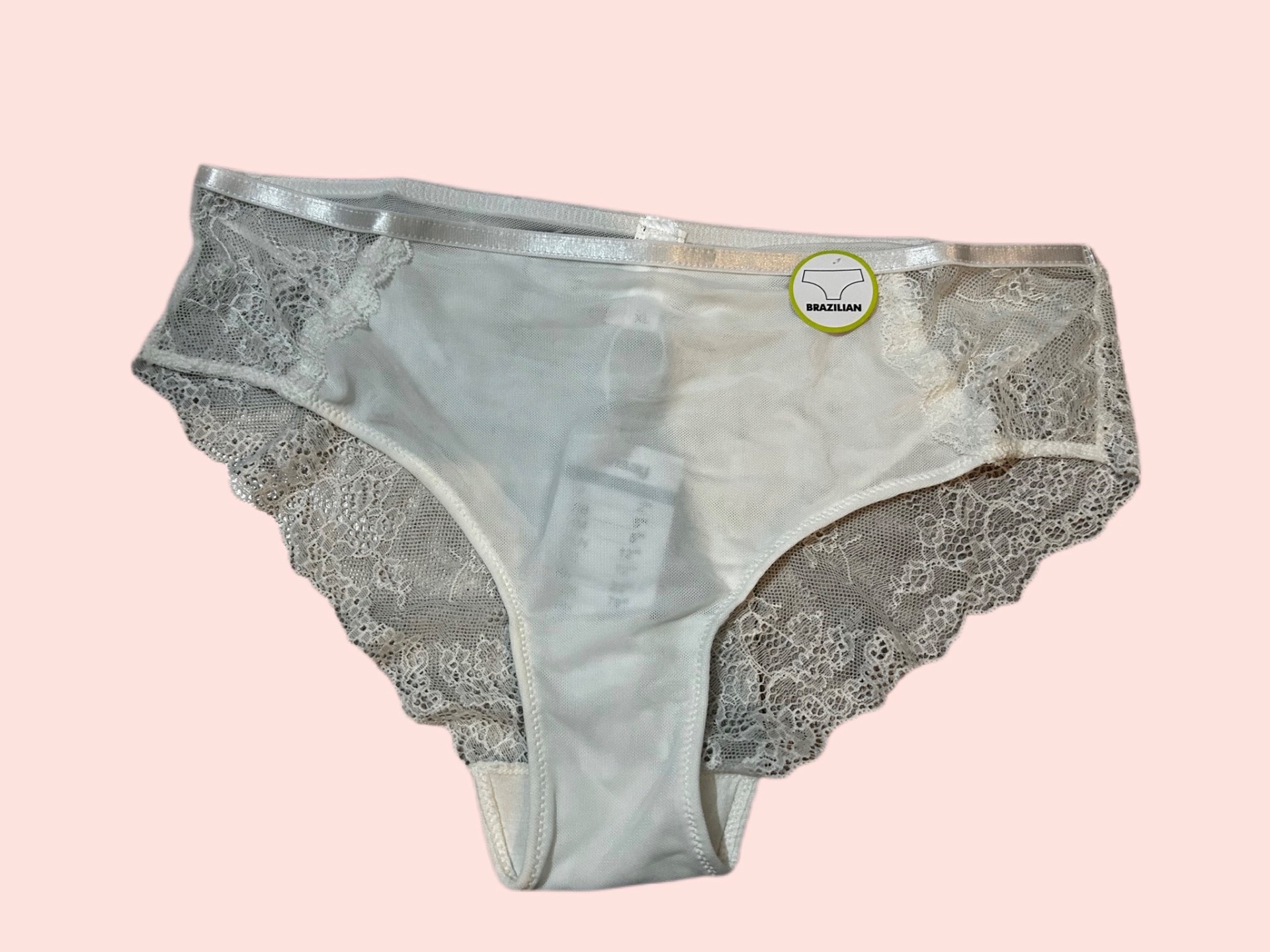 Dámske čipkované nohavičky – krémové “Brazilian”